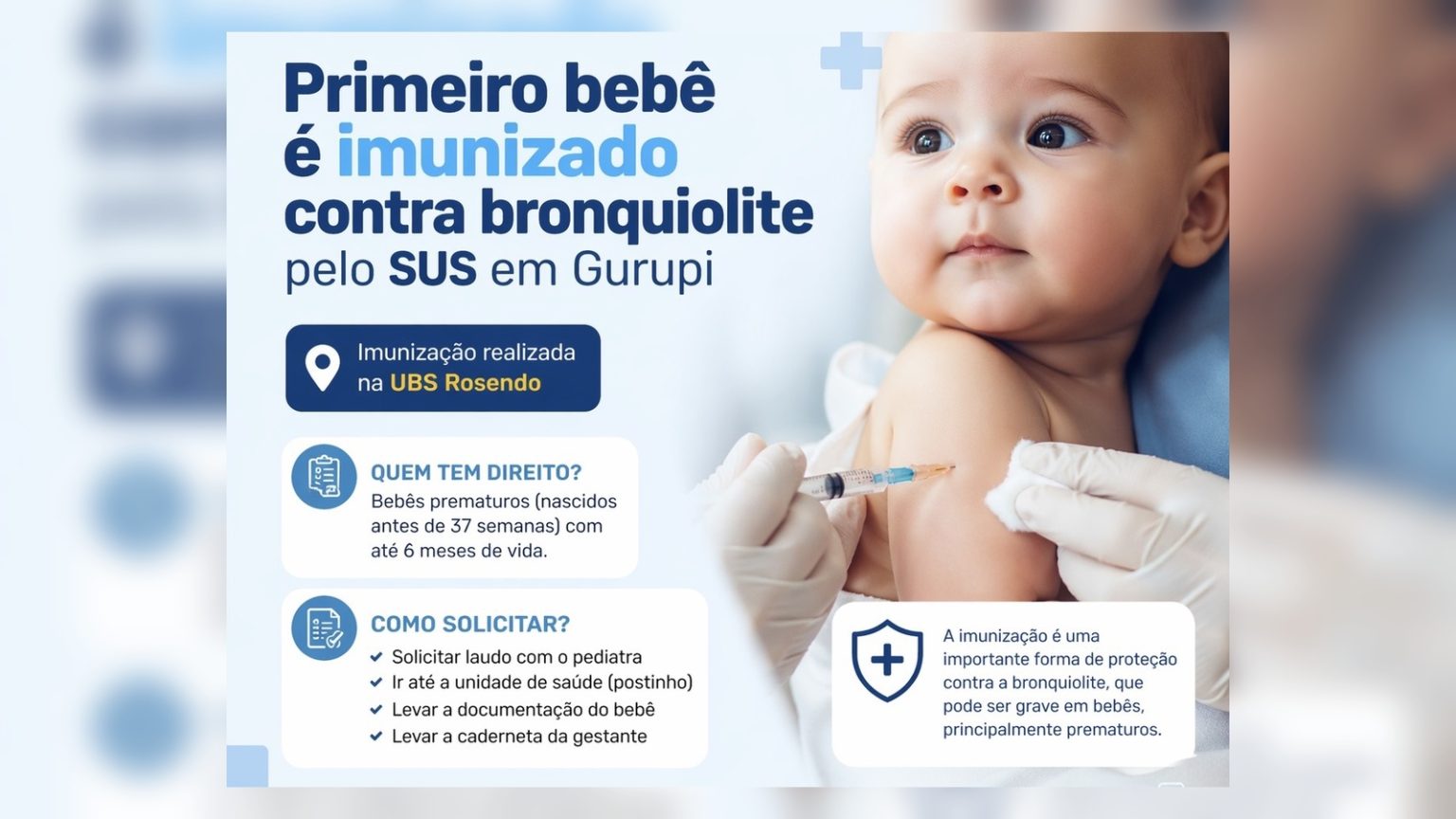 Um bebê de Gurupi recebeu, nesta quinta-feira, a imunização contra a bronquiolite pelo Sistema Único de Saúde (SUS). A aplicação aconteceu na UBS Rosendo, após solicitação feita pela família e apresentação da documentação necessária. A dose não fica disponível diretamente nas unidades de saúde. Para ter acesso, os responsáveis devem comprovar que o bebê se enquadra nos critérios exigidos e solicitar a imunização. Têm direito bebês prematuros, nascidos antes de 37 semanas, com até 6 meses de vida. Para solicitar, é necessário procurar o pediatra e pedir um laudo médico. Em seguida, os responsáveis devem ir até a unidade de…