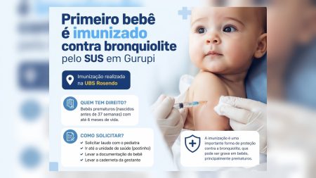 Um bebê de Gurupi recebeu, nesta quinta-feira, a imunização contra a bronquiolite pelo Sistema Único de Saúde (SUS). A aplicação…